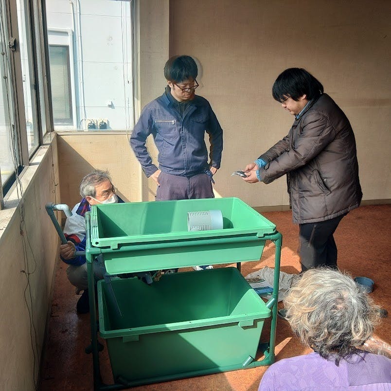 2026/02/17 14:28アクポニ実証実験の第2段階として、株式会社アクポニで取り扱っている、アクポニキットを購入し、皆で組み立てました。これにセンサー類を取付け、水質・水温をモニターしながら、養殖・栽培していくようになります(アクアポニックス×スマート農法)。水の循環で硝化サイクル*がうまくいくかがカギとなります。*硝化サイクル:魚のフン、食べ残しのエサ=アンモニア⇒亜硝酸塩⇒硝酸塩(硝酸態窒素)⇒植物 もっと見るふじさわアクポニビレッジ見学