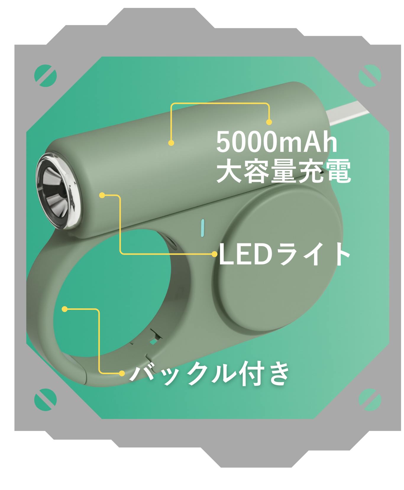 ただのモバイルバッテリーではありません。このLEDライト付きモバイル充電器は、「電源」と「光源」をひとつにした新しいライフギアです。