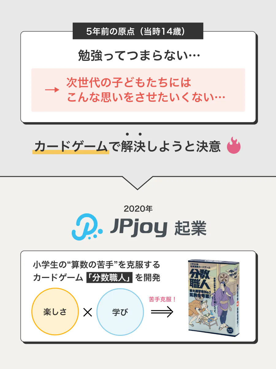 中学2年生のとき、僕は一つの思いを胸にカードゲーム会社、株式会社JPjoyを創業しました。