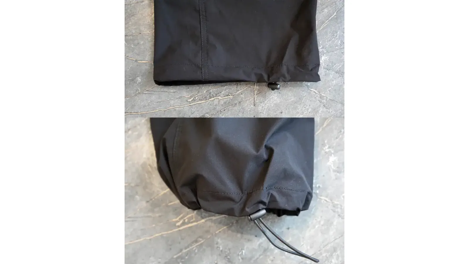 パンツ裾はドローコード(留め具付き)のゴムです。