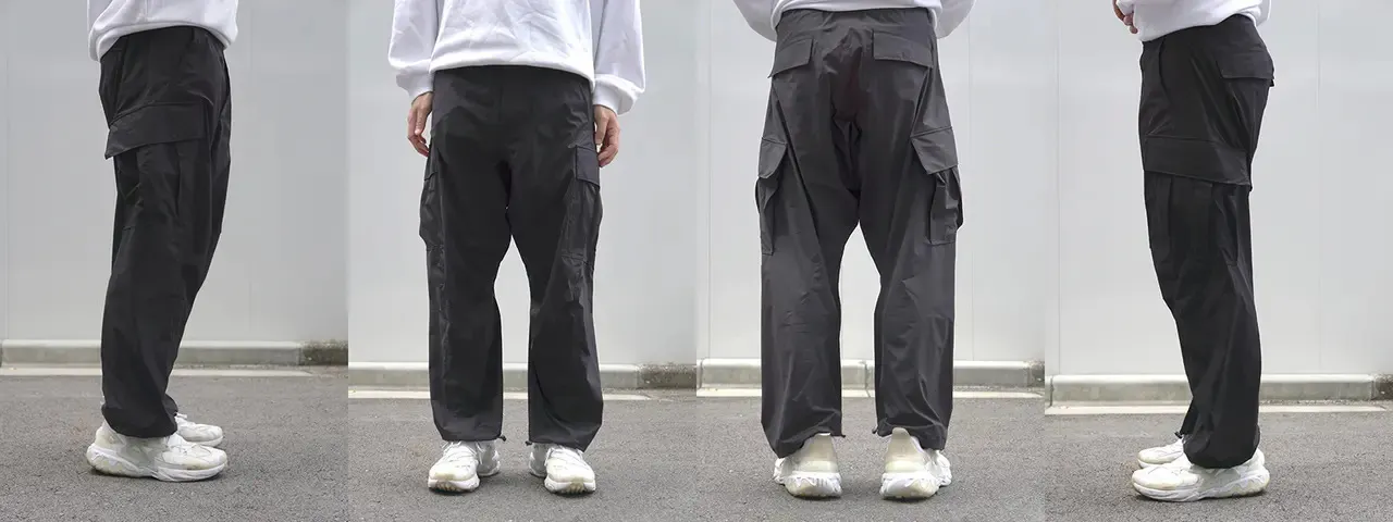 手ぶらで出掛けるシーンにおいても、左右前後+左右膝の計6つのポケットがあることから、ちょっとした携帯電話などの荷物もゆったり収納できて、究極の次世代カーゴパンツです。