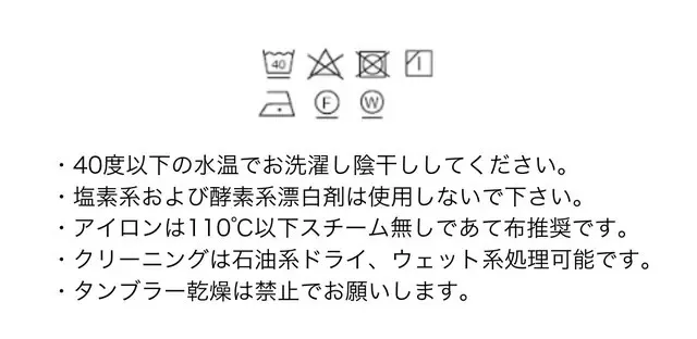 5. 洗濯・お手入れ方法(洗濯表示)