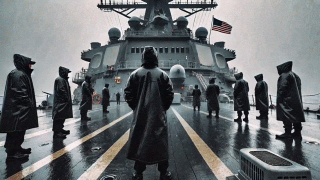 1970年代にアメリカ海軍の作業服として、船上や海上での作業時に使用されていました。当時の軍事規格や気象条件に基づいて開発されました。