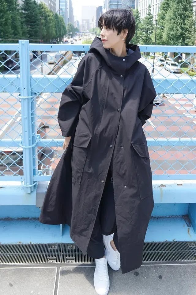 全体的にオーバーサイズに作っているため、痩せている方でも太っている方でも、コンプレックスを気にせずに着ることができる、魔法の次世代コート。