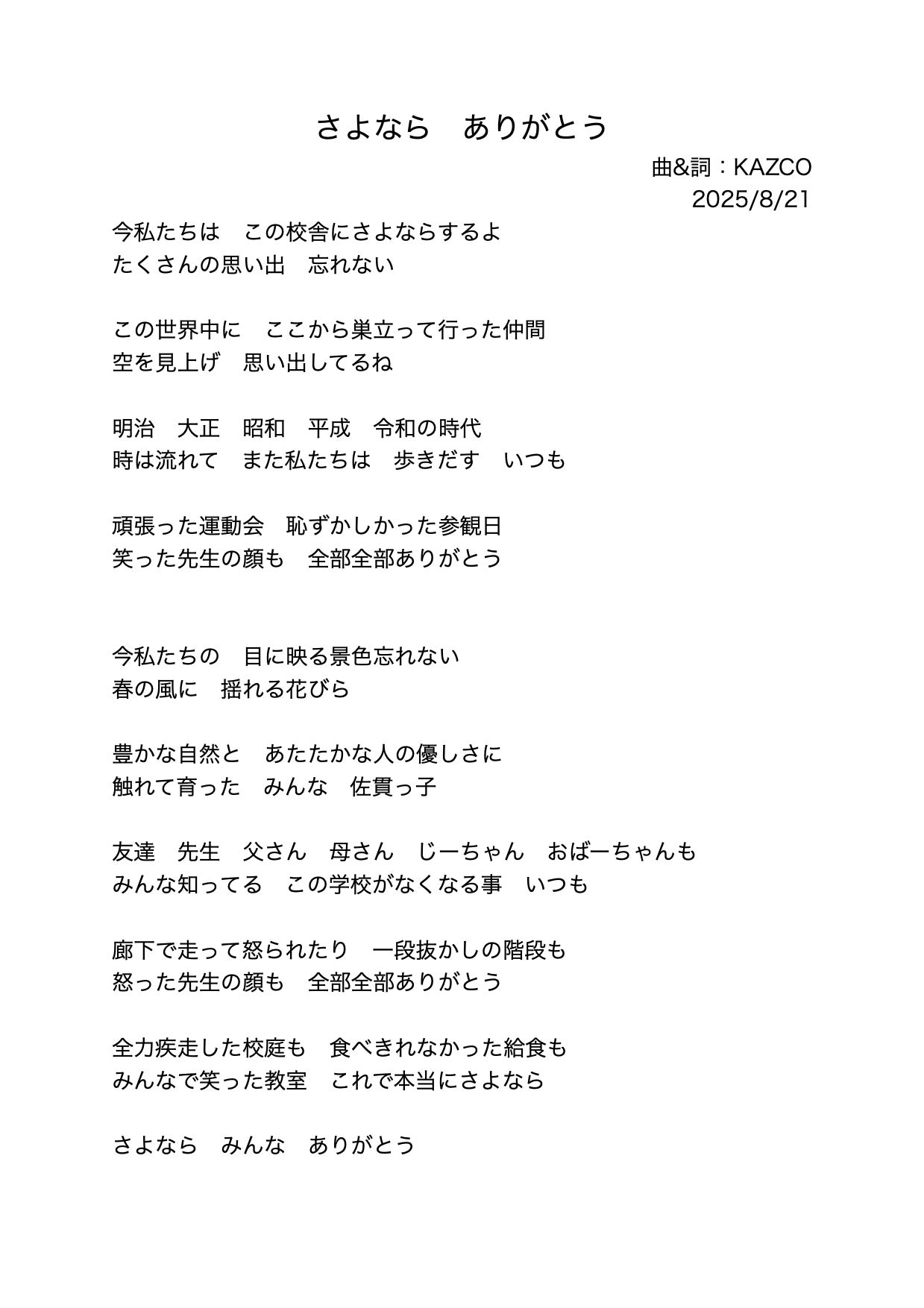 2025年9月 閉校記念ソング 『さようなら ありがとう』デモ完成