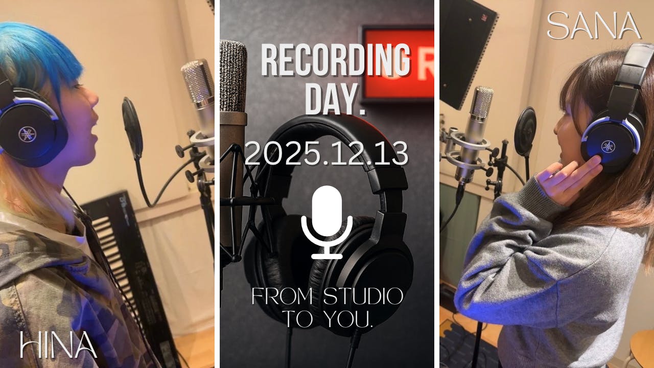 2025/12/15 10:00先週末、レコーディングに行ってきました!スタジオに入った瞬間から少し緊張しつつも、音が形になっていく時間は本当にワクワクの連続でした。レコーディングを終えた、SANA・HINAの感想はこちらです!こんな貴重な体験をさせていただけたこと、そして支えてくださっている皆さんには、感謝の気持ちでいっぱいです。私たちの想いがたくさん詰まったこの楽曲を、ぜひたくさん聴いていただけたら嬉しいです。完成を楽しみにしていてください…! もっと見る