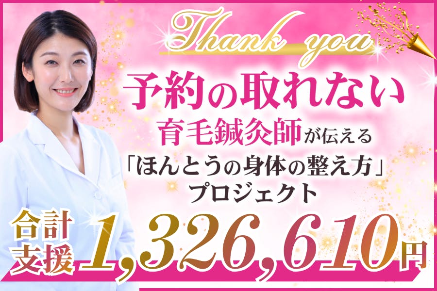 2026/01/30 14:49今回のプロジェクトを通じて・書籍:227冊・あたまの化粧水:46本 育毛にまつわるたくさんのリターンを皆さまの元へお届けできることになりました。想像をはるかに超える温かいご支援をいただき心から感謝の気持ちでいっぱいです。本当に、本当にありがとうございます!このプロジェクトは、単に「本を出版すること」だけが目的ではありません。私がこれまで向き合ってきた【EN式育毛鍼灸】を通じて、“髪・身体・心”をまるごと整えるという大切な考え方を、必要としている方へもっと届けたい——。そんな想いから始まった挑戦でした。皆さまお一人おひとりのご支援が、その想いを形にするための大きな大きな後押しになりました。現在は、皆さまのお手元へリターンをお届けできるよう、感謝の気持ちを込めて私自身もワクワクしながら、準備を進めております。お届けまでもうしばらく、楽しみにお待ちいただけたら嬉しいです! もっと見る