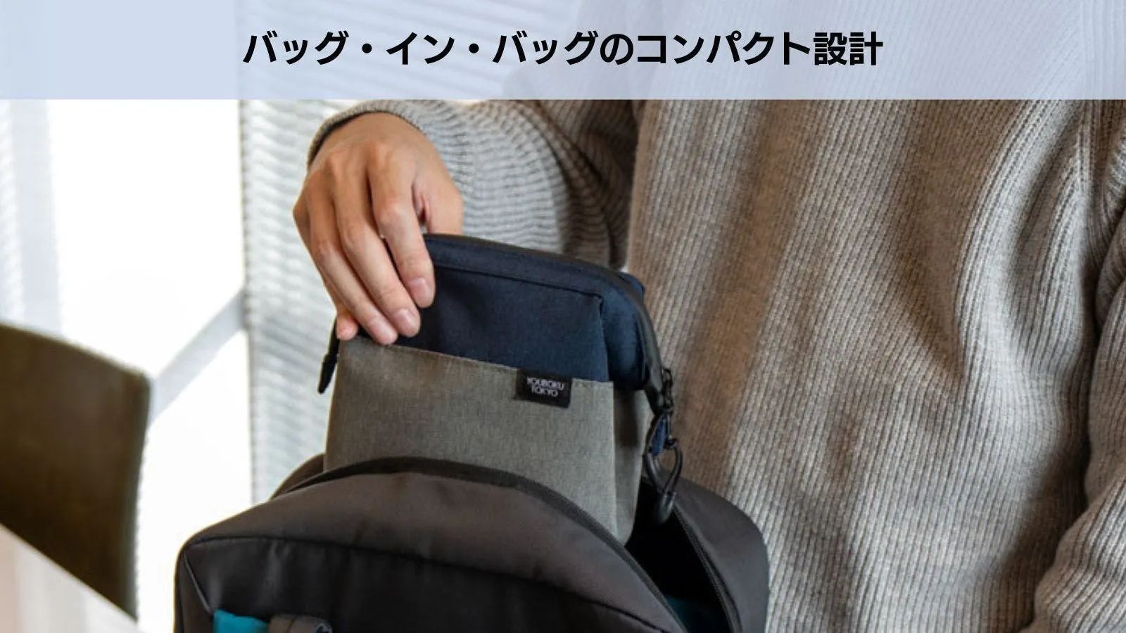 「デイズポーチ」は、小さなテーブルにもすっきり収まるコンパクトさが魅力。カフェやコワーキングスペースでも、限られた作業スペースを効率的に活用できます。