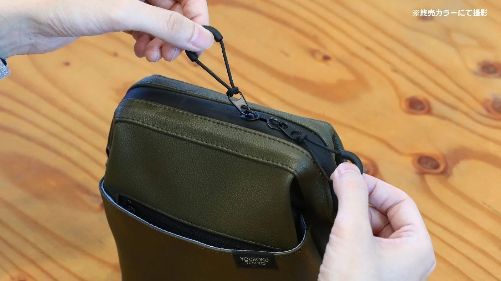しかし、「デイズポーチ」はがま口タイプの口金を採用し、メインポケットが左右に大きく開く設計。指で軽く押さえるだけでしっかりと口が開き、中のガジェットをスムーズに取り出すことができます。ポーチの底にあるアイテムも簡単にアクセス可能です。