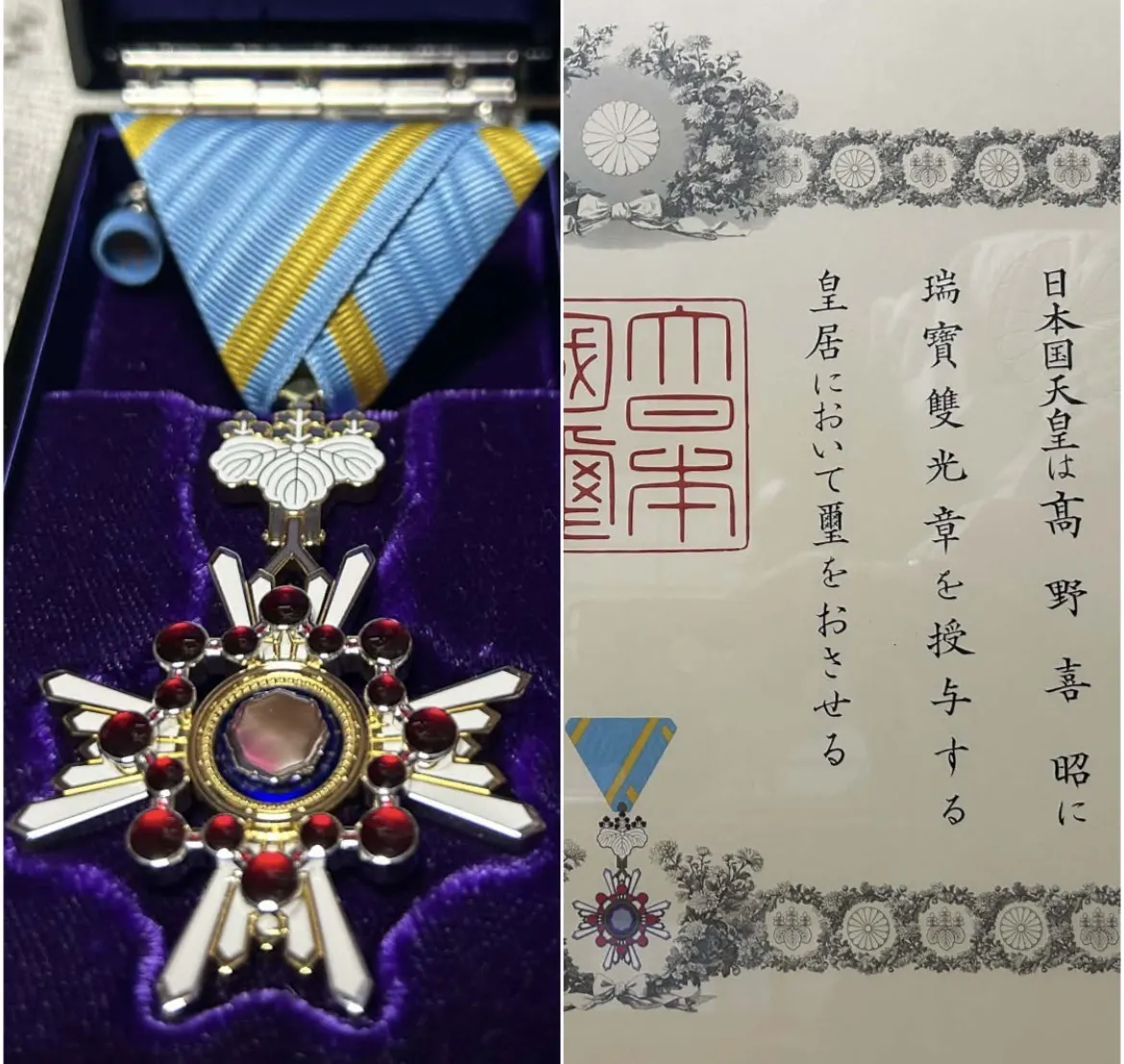 【ご報告】父が「瑞宝双光章」を授与されました