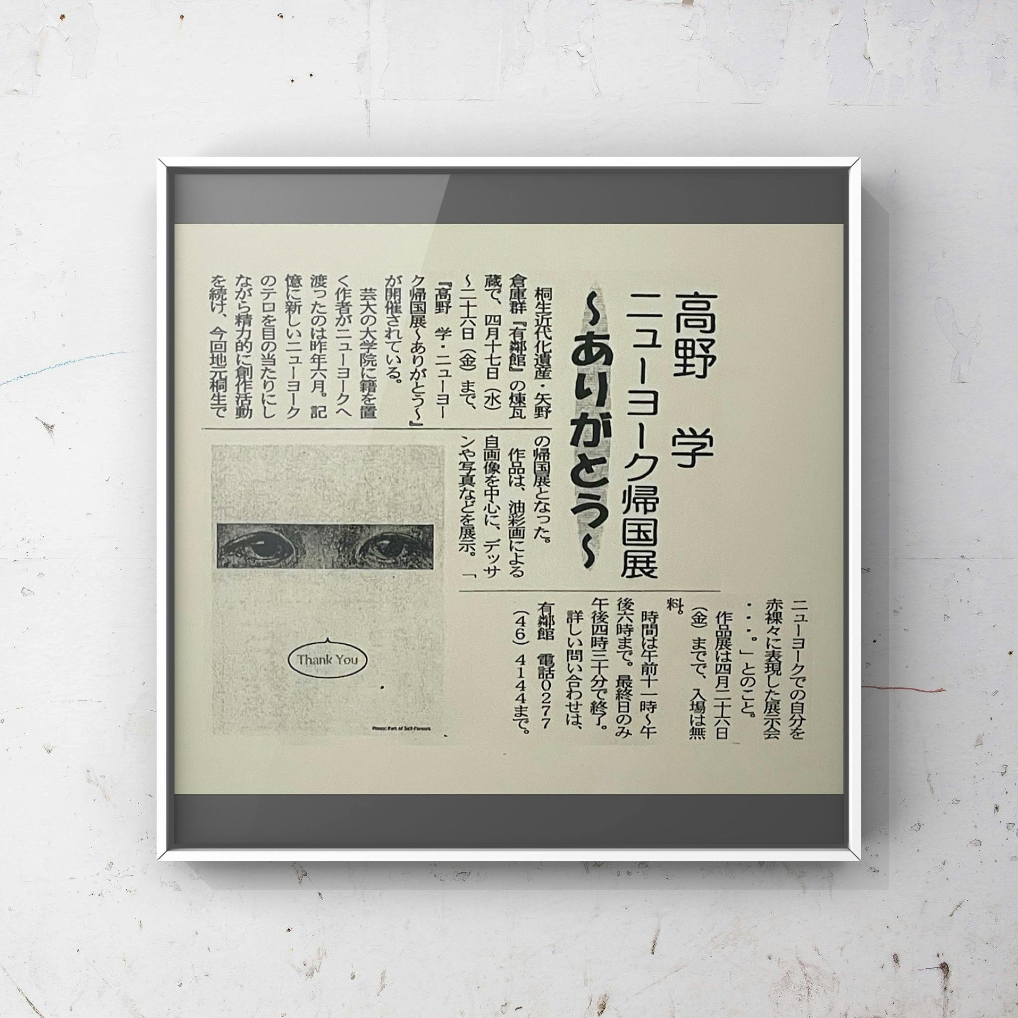 この作品はニューヨーク留学中の2001年、現地でテロを体験した数日後に描いた絵です。最初に展示したのは他でもない、桐生の有鄰館です。地元紙の桐生タイムス後援で行われた個展「ありがとう」。