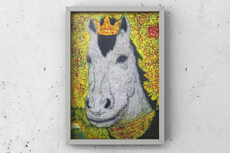 前回の午年直前、12年前に描いた1点のみの追加リターン。アメリカやメキシコのアートマガジンでも紹介された作品です。次の午年まで手元で温めておりました。