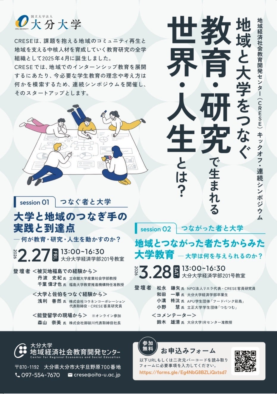 3月28日(土)大分大学地域経済社会教育開発センター主催の大分大学地域経済社会教育開発センターキックオフシンポジウムSession2に登壇させていただきます。