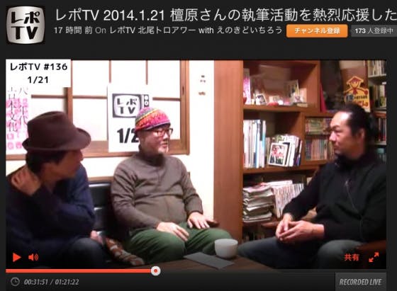 このプロジェクトのPRのためUSTREAM番組「レポTV 北尾トロアワー with えのきどいちろう」に出演しました。