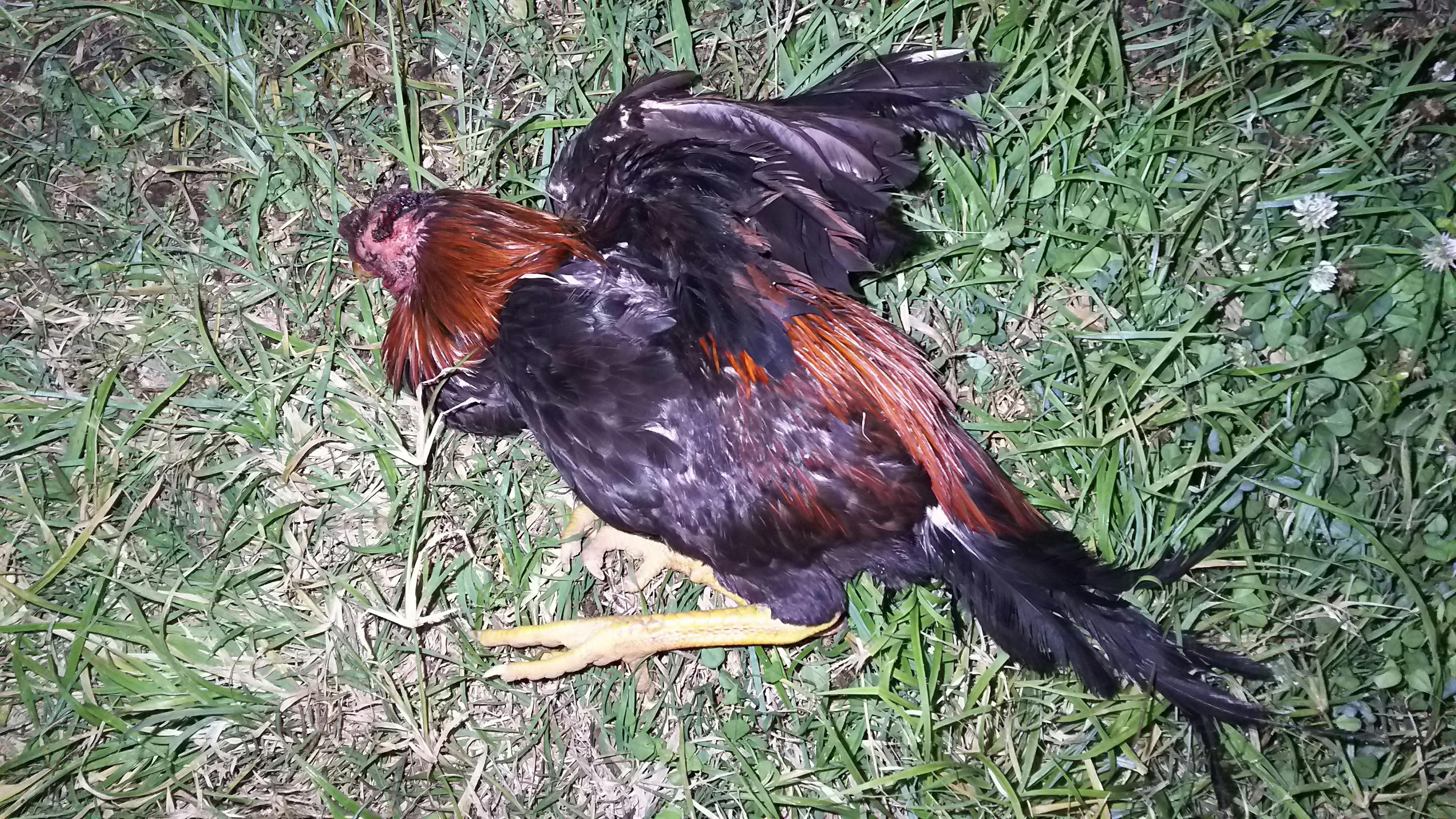 血まみれで瀕死の状態の1羽の軍鶏が捨てられていました。