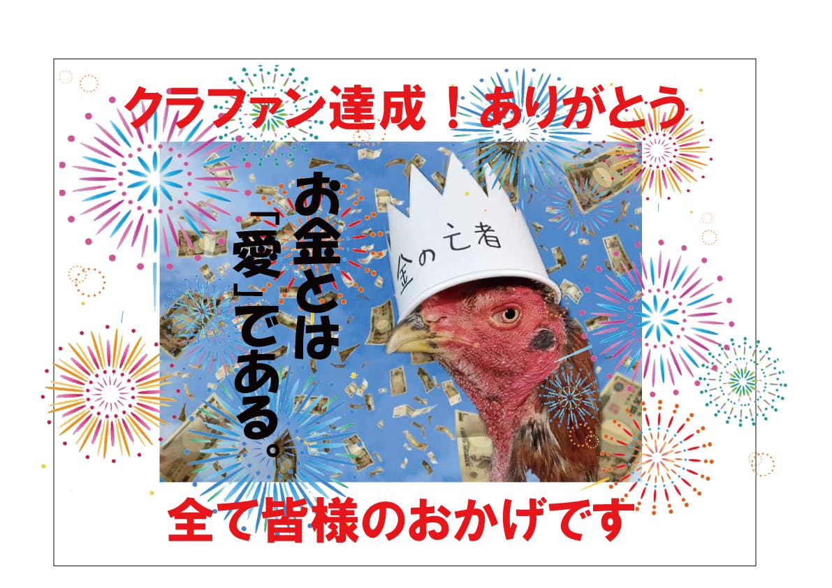 2025/12/04 18:42お金とは、愛であり、希望であり、そして未来そのものです。皆様のおかげで、クラウドファンディング 達成いたしました本当に…感謝しかありません。ありがとう。心から、ありがとう。この命たちのために、ますます頑張っていきます。これからもどうぞ見守ってください。クラウドファンディング、いよいよ あと1日 となりました。正直、最初は「無理かもしれない」と思っていました。だからこそ、ここまで応援していただけたことが本当に嬉しいです。鶏が増えるたびに、実はぞっとしていました。「入れる場所、もうないのに…」「台風きたらどうしよう…」いつもその不安と隣り合わせでした。それでも見捨てられません。軍鶏は本当にかわいい生き物です。感情の豊かさは子どもと変わりません。プレハブに入れる時、順番を待っていたのに自分の番じゃなかった子は悲しい声を出します。怒る子もいます。恐怖を感じたら立ち向かう子、一目散に逃げる子。知らない人(ガスの点検員さんなど)が来たら、なぜかみんな一致団結して一斉に鳴き始める。こんなに感情があって、個性があって、痛みも悲しみも喜びもちゃんと感じている生き物が、どうして一生閉じ込められたり、餓死させられたり、傷つけられていいはずがあるのでしょうか。この現実をなんとか変えたい。自分が生きている間に、必ず変えたい。その思いだけで続けてきました。今日はなんと、クラウドファンディングのトップページに掲載されています。一週間前、キャンプファイヤーさんからアドバイスをいただき、タロットのおねえさんには枠を譲っていただき、1日だけトップページの掲載枠を購入しました。(愛はいくらあっても満たされません)支援していただかなくても大丈夫です。この現実を知って、広めてください。そして、ここまで何度も何度も支援してくださった皆様。失礼ながら、決して裕福な方ばかりではないと思います。そんな中から絞って支えてくださっていること、胸が痛いほど伝わっています。心の底から感謝しています。最後の1日、どうかよろしくお願いいたします。 もっと見る