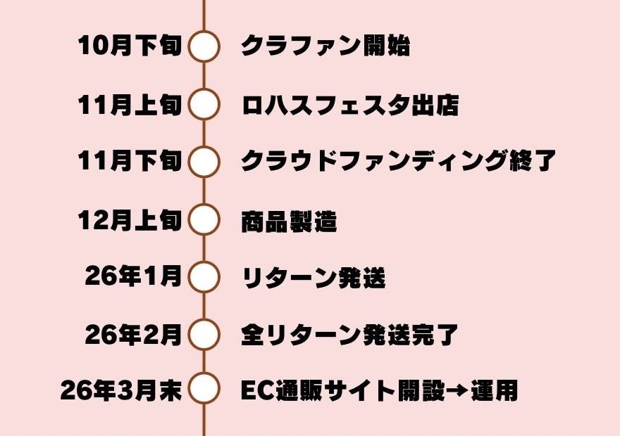 だから次は、イベントだけでなく、もっと多くの人に届けられるよう、EC販売(ネット販売)に挑戦したいと考えています。ただ、そのためにはECサイト構築や製造体制の整備・拡大など、多くの資金が必要です。