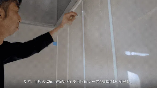 市販の20mm幅パネル用両面テープの剥離紙をはがす