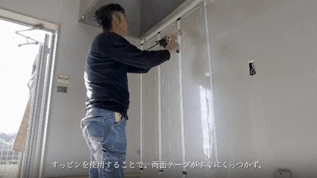 『すっピン』は、両面テープ施工の「貼ったら最後」という常識を覆す施工補助シートです。