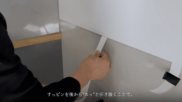 『すっピン』をスッと引き抜くことで、両面テープが粘着して本接着完了!