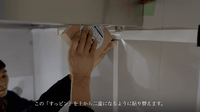 『すっピン』をスッと引き抜くことで、両面テープが粘着して本接着完了!