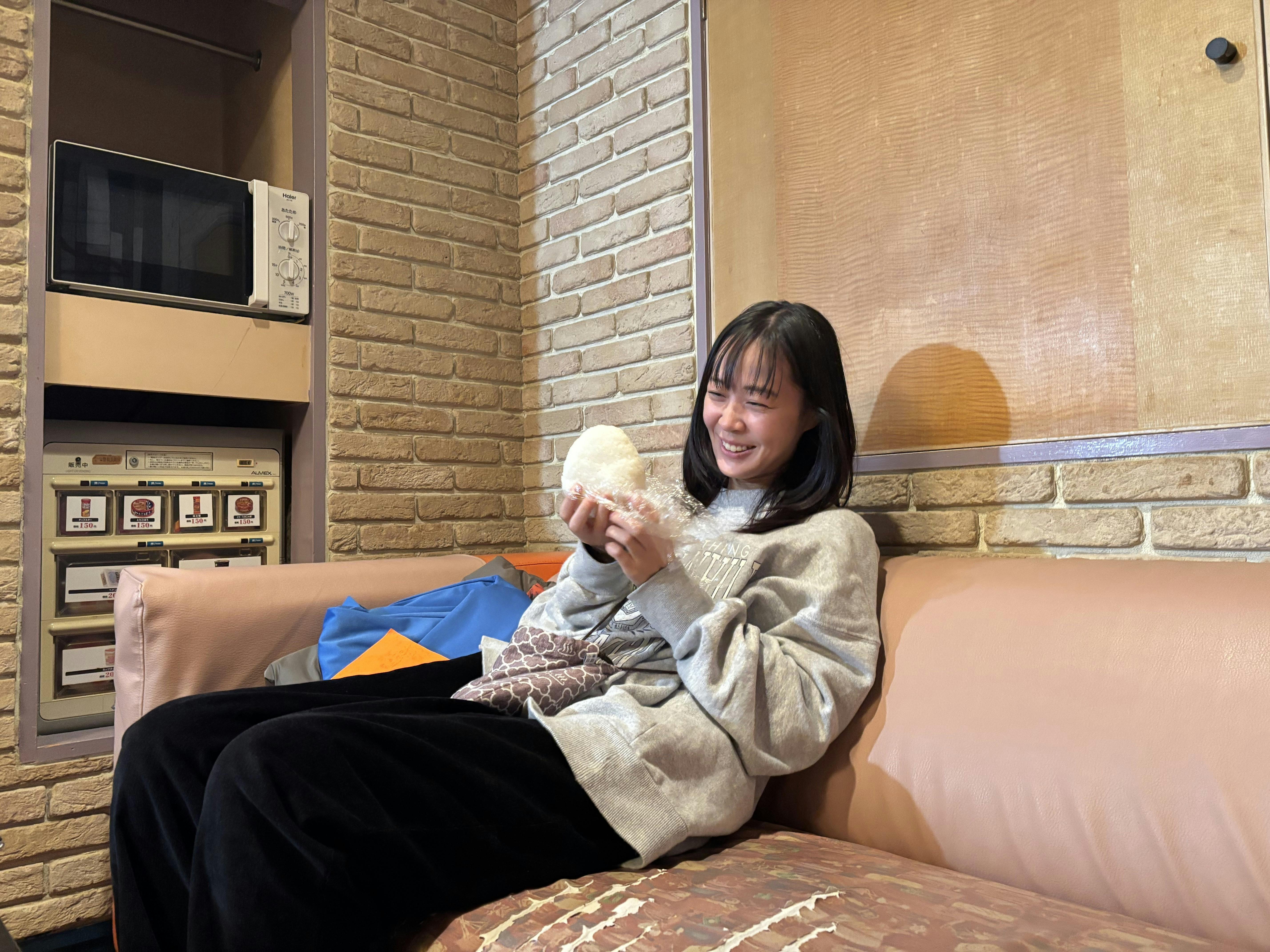 吉川プロデューサーお手製の爆弾級お・に・ぎ・りを頬張る葉月役の堂ノ下さんw