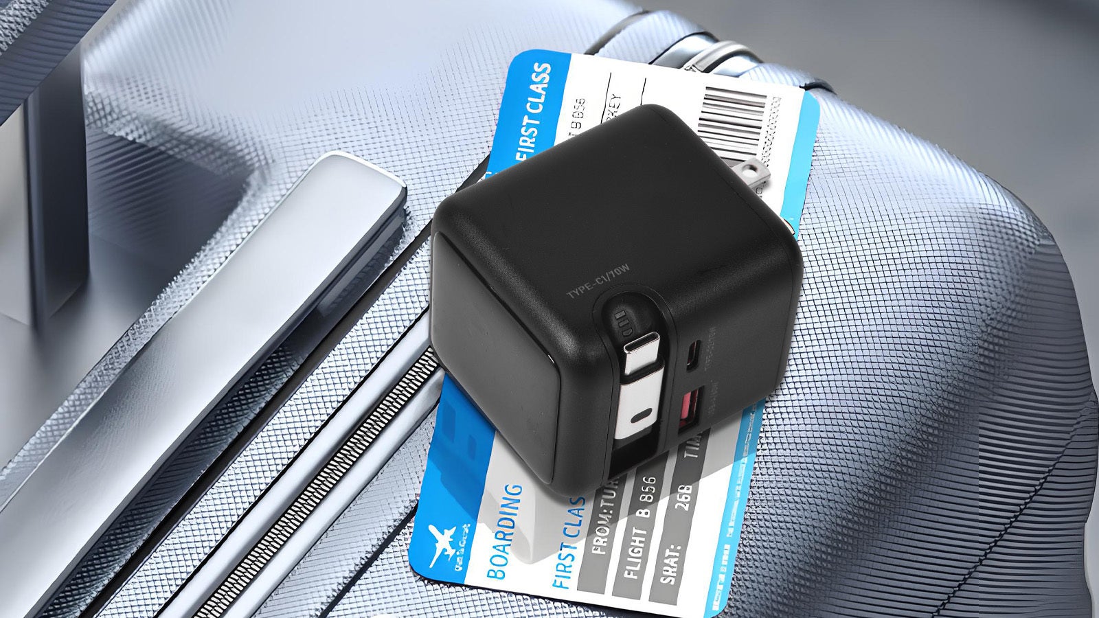 最大70Wの急速充電に対応し、コードリール式のType-Cケーブル(最長80cm)を本体に内蔵。さらにUSB-CとUSB-Aポートを搭載しているから、最大3台のデバイスを同時に充電可能。