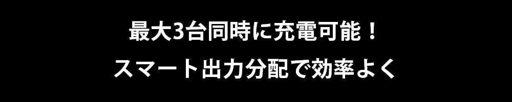 3台同時充電が可能です。同時充電で、インテリジェントに出力を分配します。