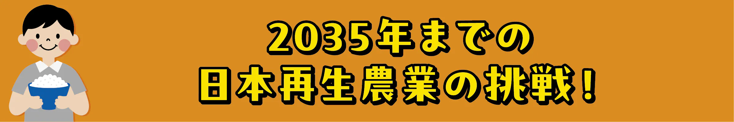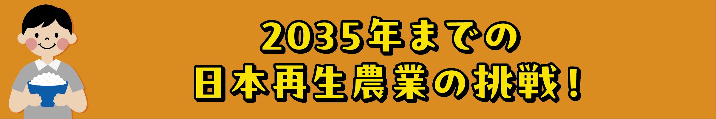 2035年までに、「農薬不使用」「化学肥料不使用」は勿論、有機肥料も不使用の自然栽培の田んぼを、4,000ヘクタールまで拡げて行きます(耕作放棄地の1%を再生)。