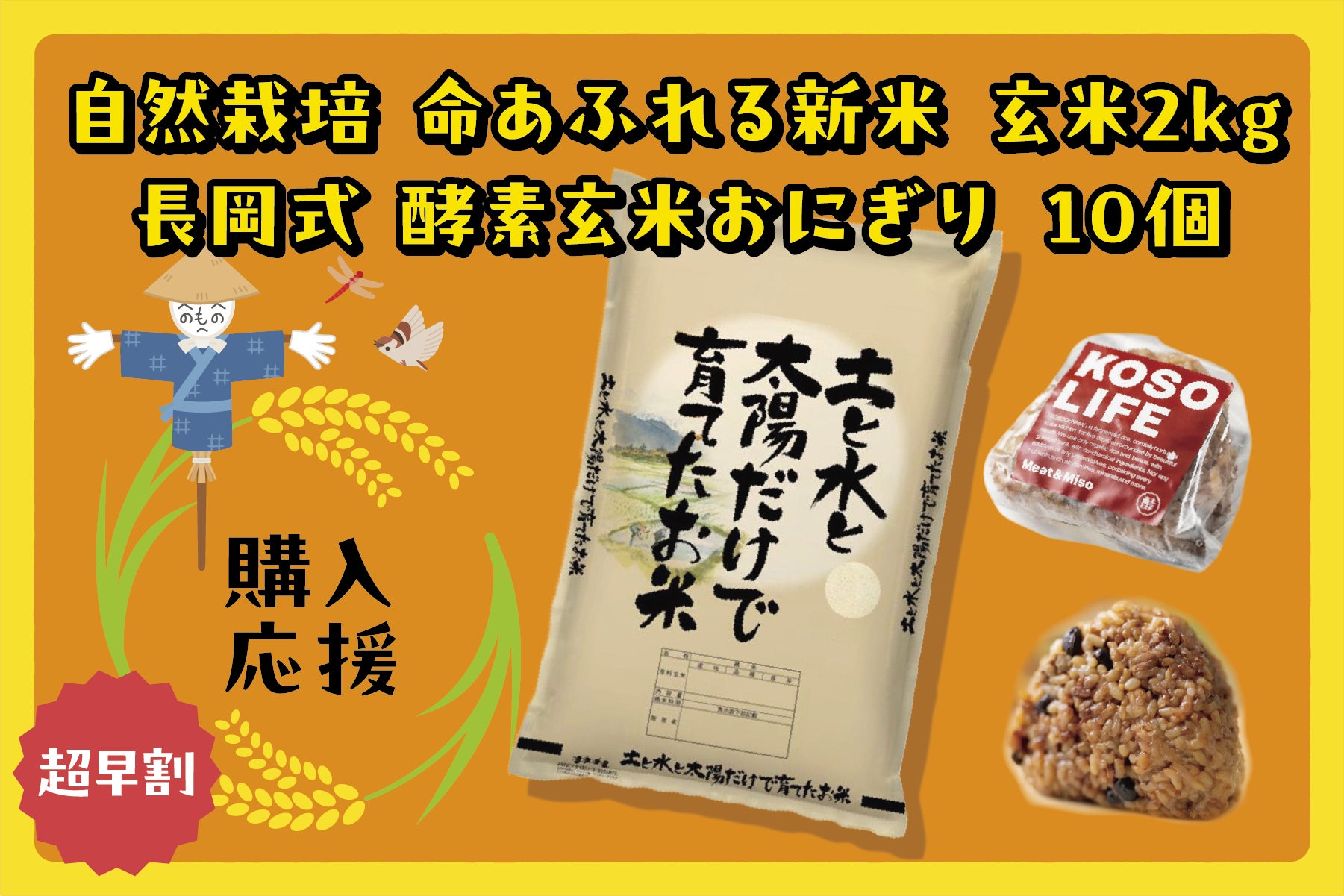 ・超早割 8,000円 【贅沢二重奏】「①自然栽培 新米2kg(玄米)」+「②長岡式 酵素玄米 おにぎり 10個」