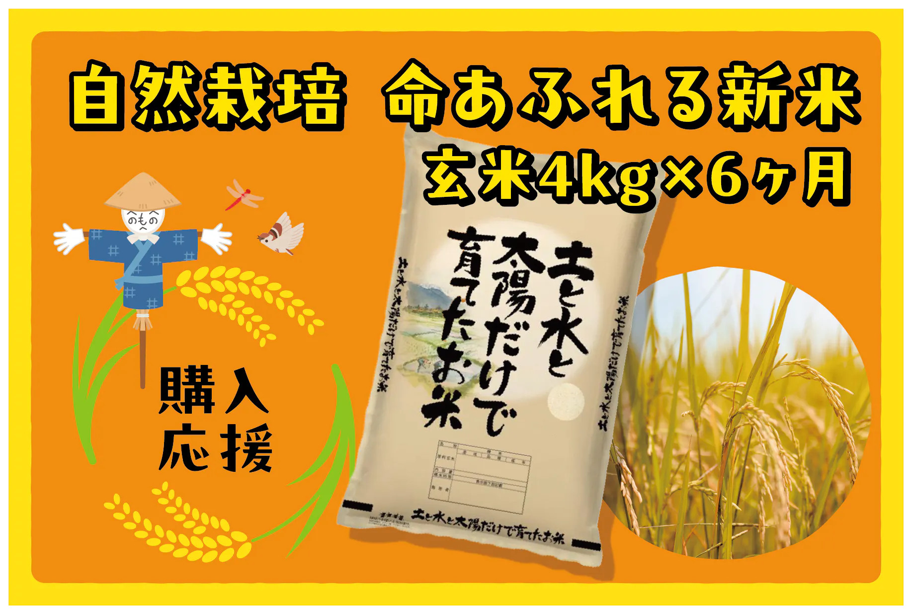・55,000円 【毎月お届け】自然栽培 新米4kg(玄米)×6か月