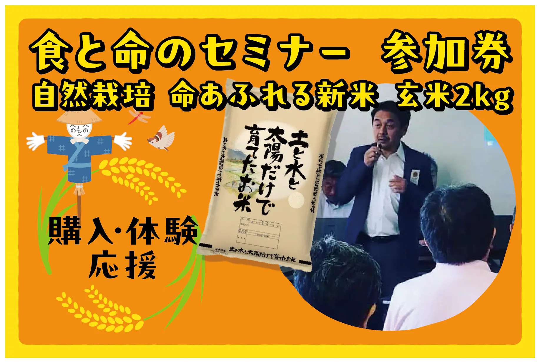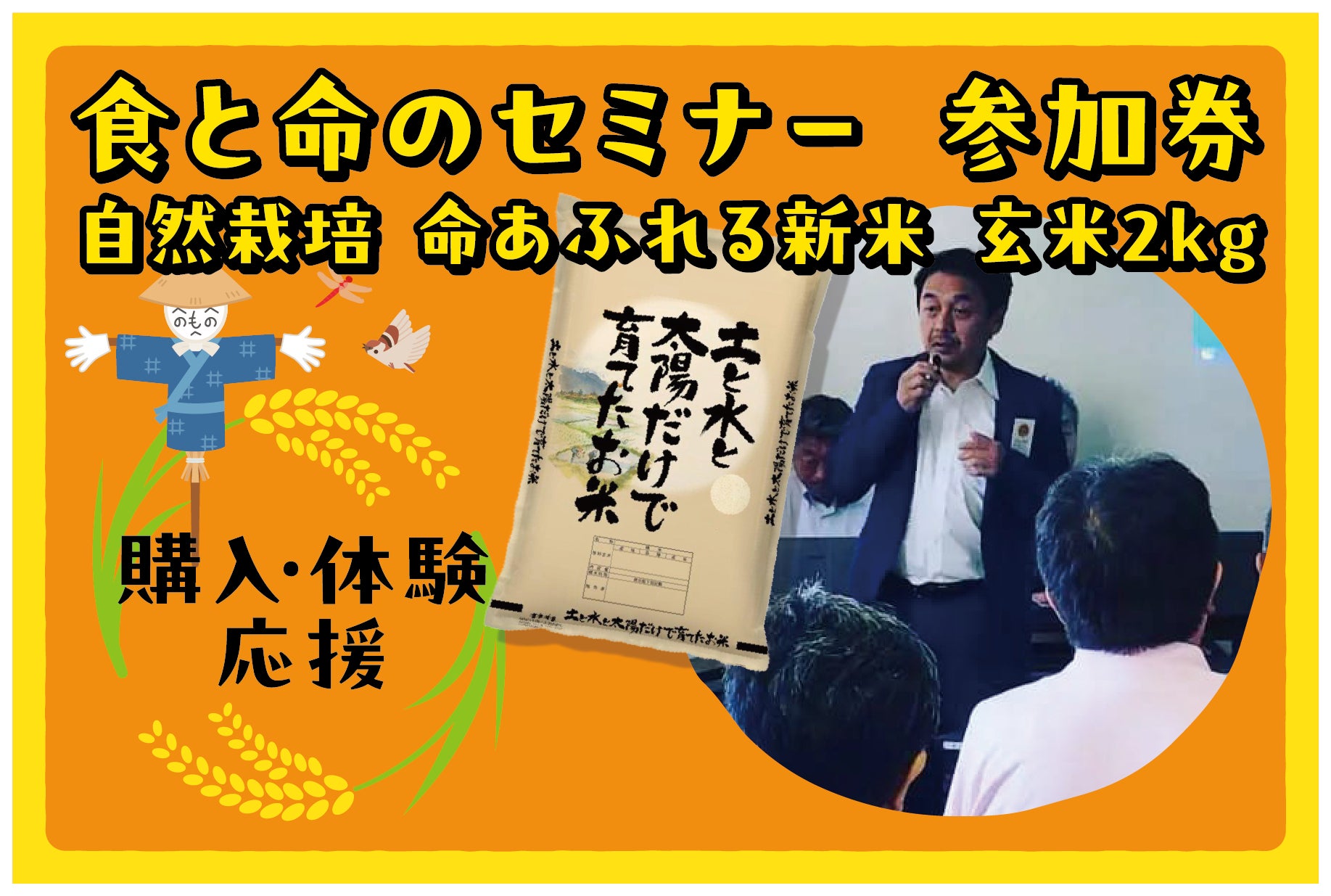 ・11,000円 【学びと米】「①自然栽培 新米2kg(玄米)」+「②食と命のセミナー参加権(13,200円相当)」