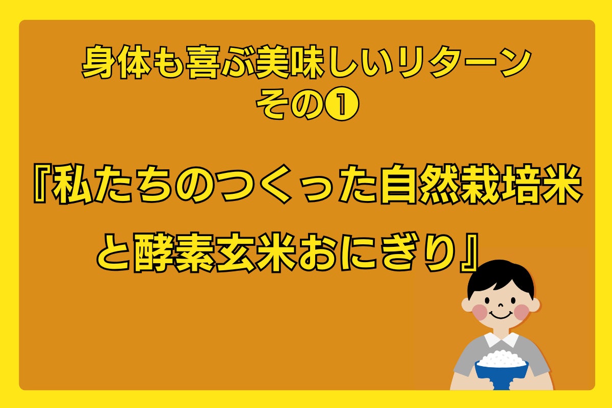色々あるリターンの中でもおススメなのは、やはり日本再生農業が今年初めて自分たちで田んぼを借りて田植えから収穫までおこなった宮城県産の「自然栽培米(玄米)」と、「長岡式酵素玄米おにぎり(KOSO LIFE)」です!