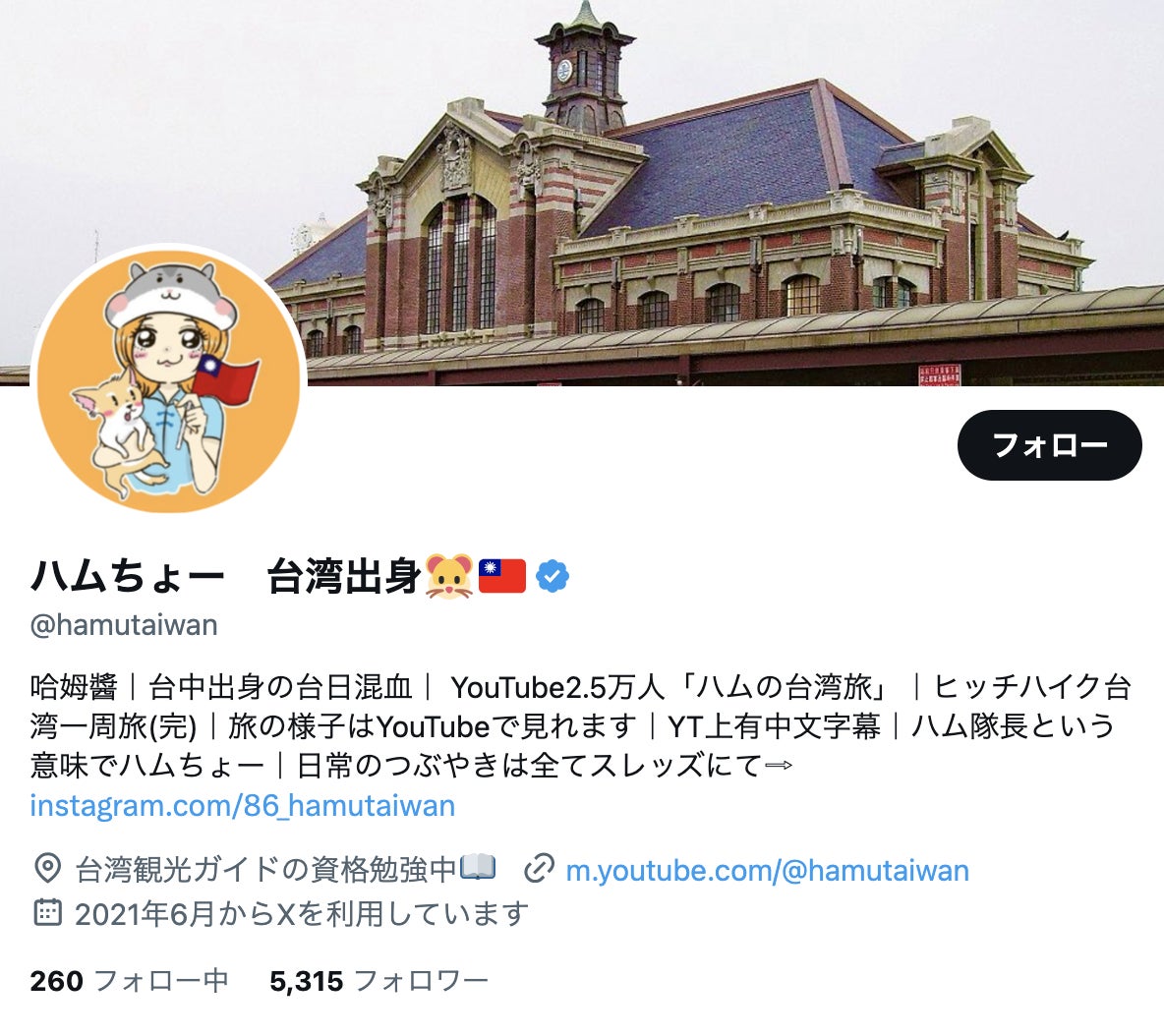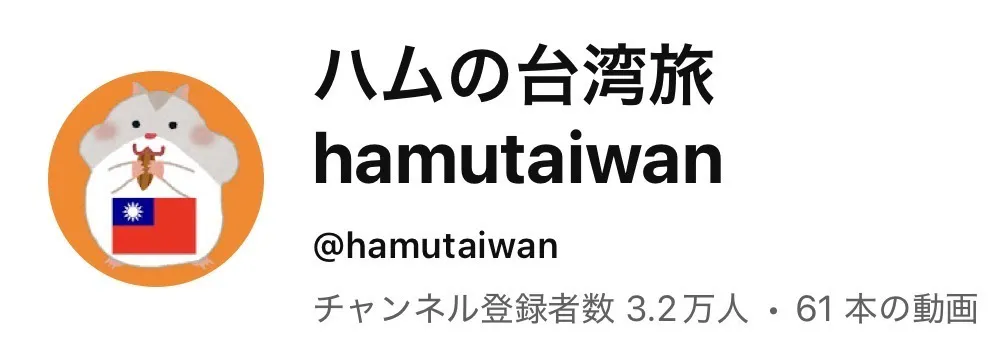 こんにちは!「ハムの台湾旅」のYouTubeを運営している台湾生まれ日本育ちのハムです。