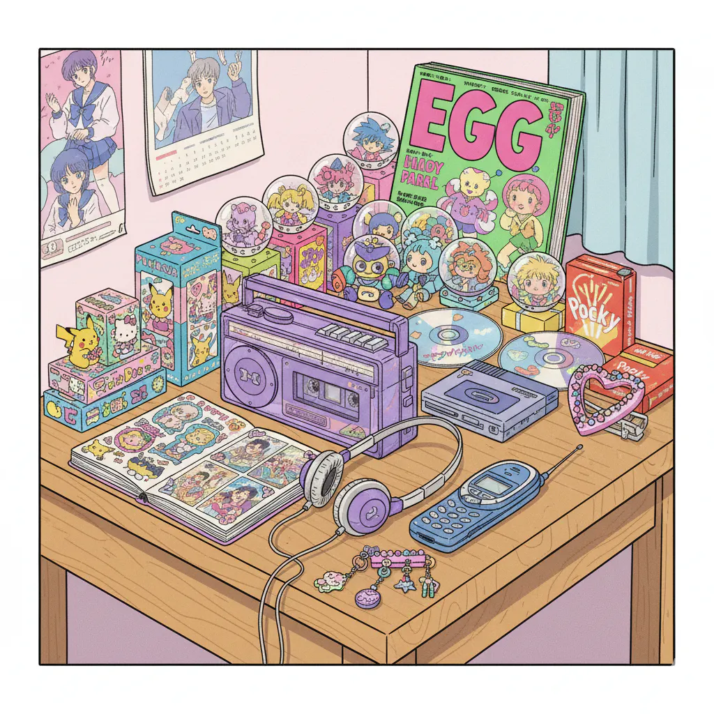 平成(1989〜2019)を懐かしむカルチャームーブメント。昭和レトロが「ちゃぶ台・銭湯・ブラウン管テレビ」なら、平成レトロは「ガラケー・プリクラ・たまごっち・アムラー・MD・ルーズソックス」