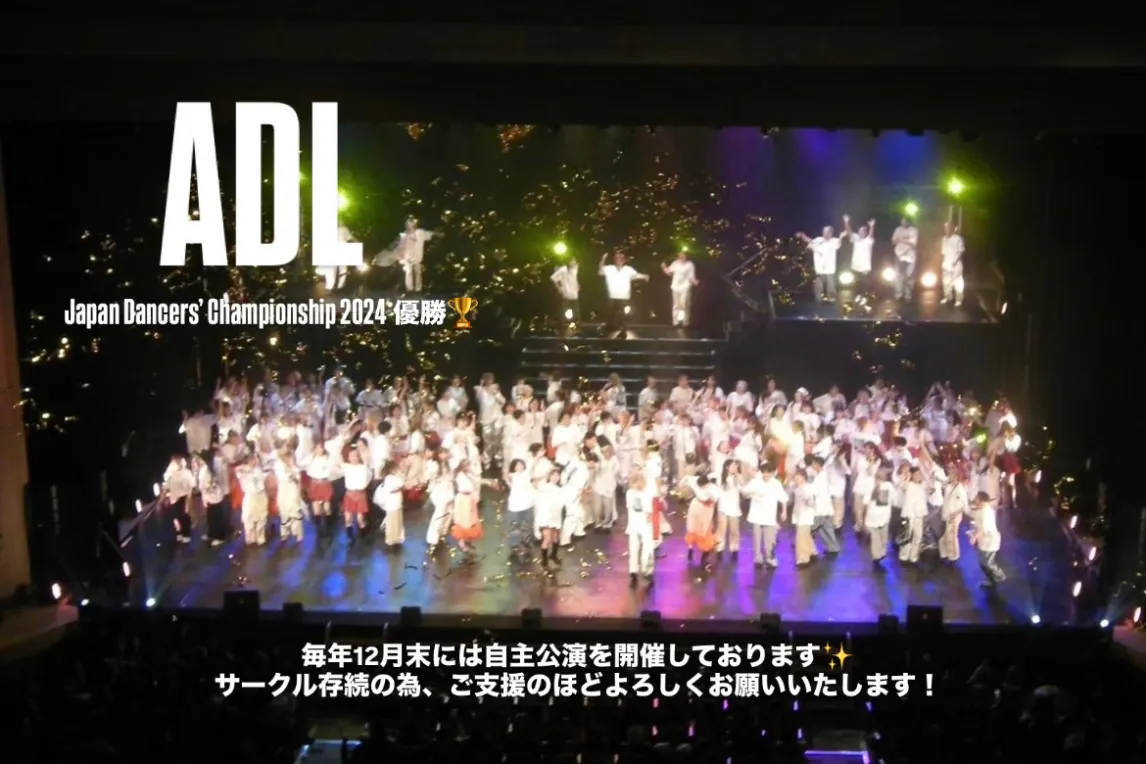 皆様からのご支援は、ADLがこれからも最高のパフォーマンスを追求し続けるための大切な基盤となります。物価高騰などの厳しい状況下でも、イベントのクオリティを一切妥協することなく、お客様も私たちも心から楽しめる公演を作り上げていきたいと考えています。また、活動費の負担を減らすことで、より多くの学生が安心してADLの活動に参加できる環境を整え、次世代へこのサークルを繋げていきたいです。このプロジェクトをきっかけに、ADLを知らなかった方にも私たちの情熱が届き、応援してくださる輪が広がることを願っています!