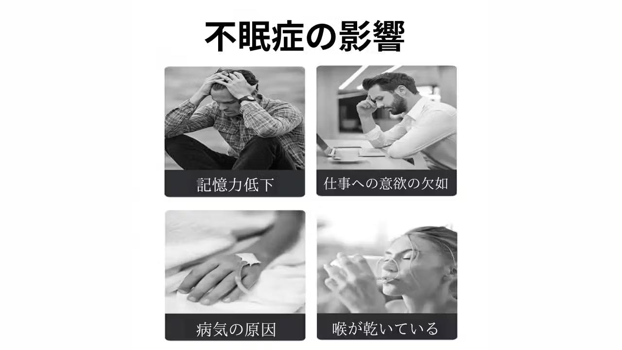 この製品は、特に呼吸困難や睡眠時無呼吸症候群のサポートに適しています。これらの症状を持つ方々にとって、いびきの軽減は快適な睡眠のための重要な要素です。高齢者にもおすすめ