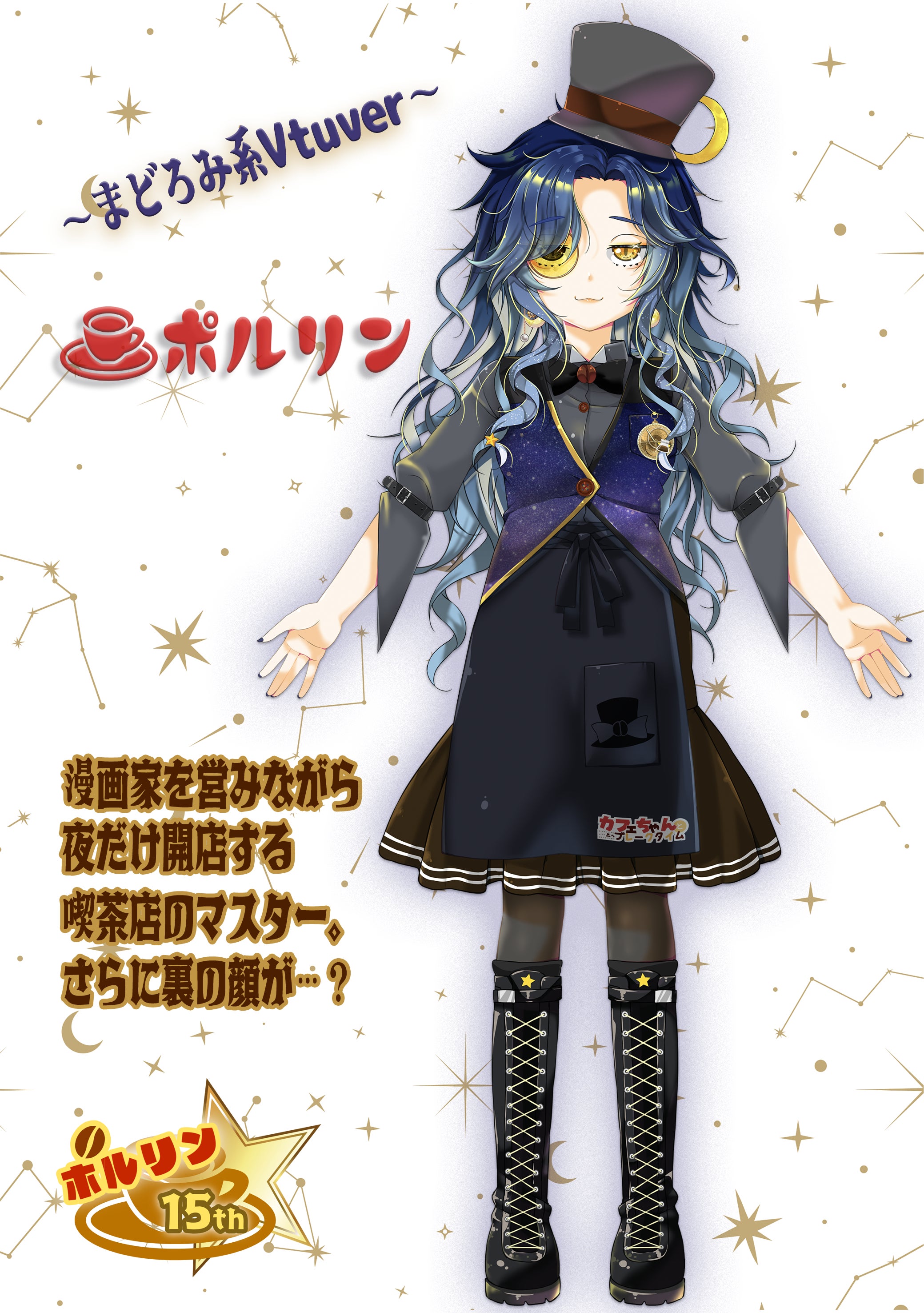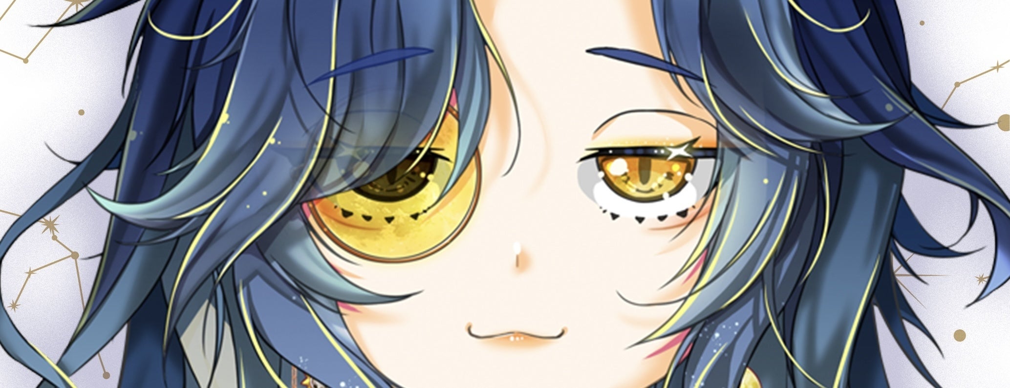 右目は新月、左目は半月、モノクルは満月を表してます。