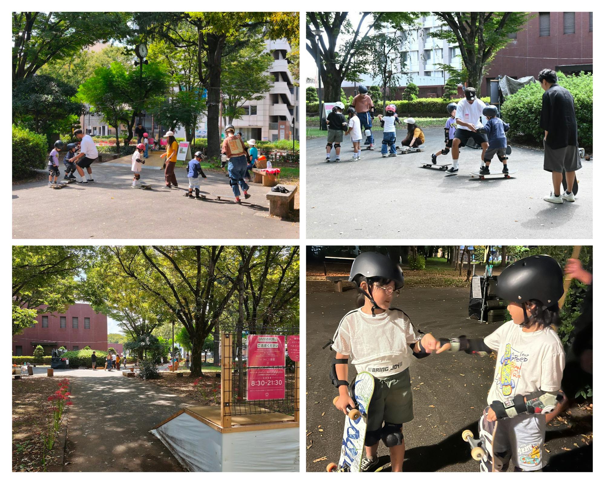 山梨県と甲府市が地域活性化のため行っている取り組み「甲府まちかなエリアプラットフォーム」の一環として甲府市の中央公園内で特設のスケートエリアを設け取り組み期間中の9.10.11月の3か月間スクールを行ってきました。