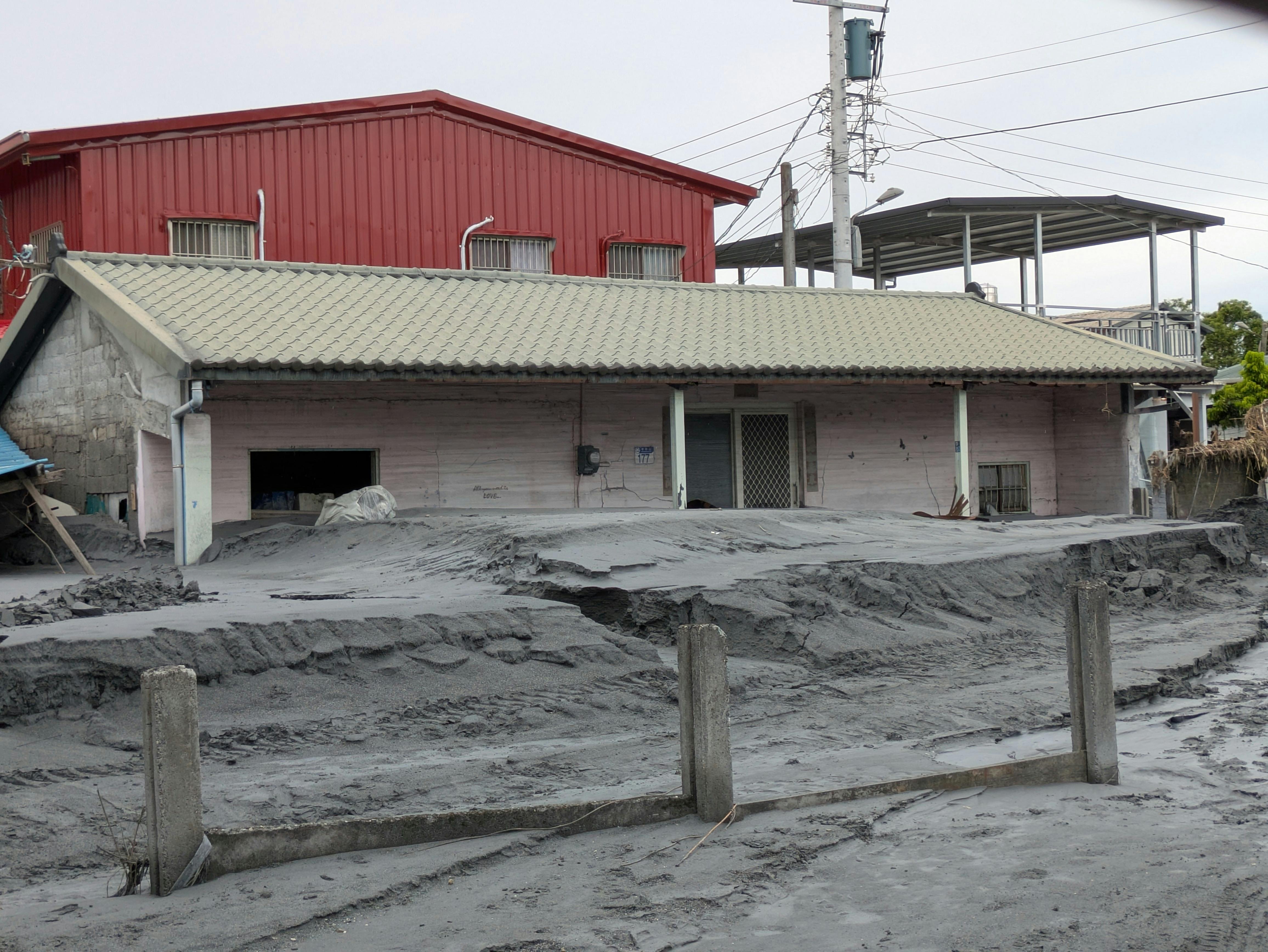 泥で埋まってしまった平屋の建物(9月26日、花蓮県光復郷にて)