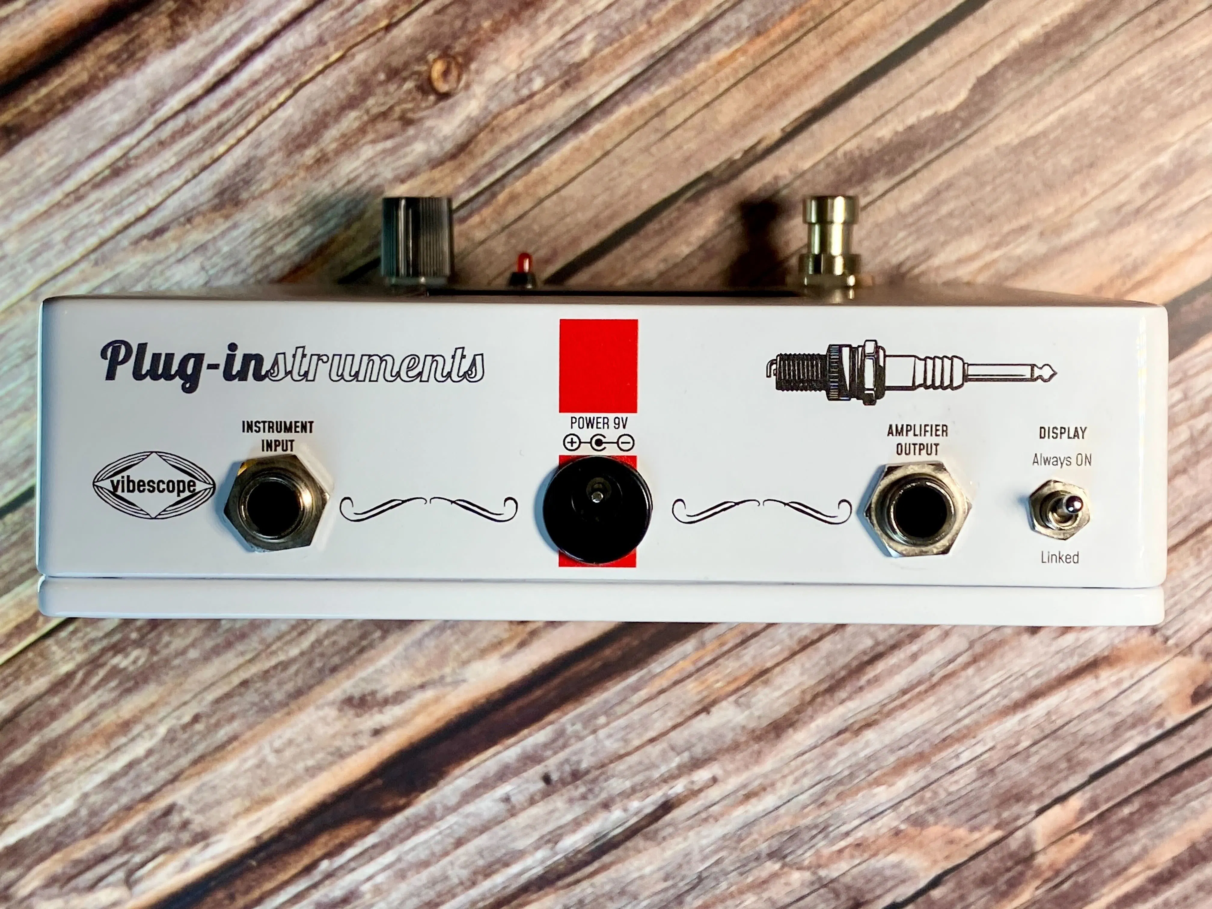ノブを一番左に回すとトゥルーバイパス時より若干低めのレベルから始まり、甘く伸びやかなトーンを経由して、爆発的な出力までをカバー。ブースト回路は分析ツールの前段に配置されているため、Vibescope自体のブーストのかかり具合も波形として確認することができます。