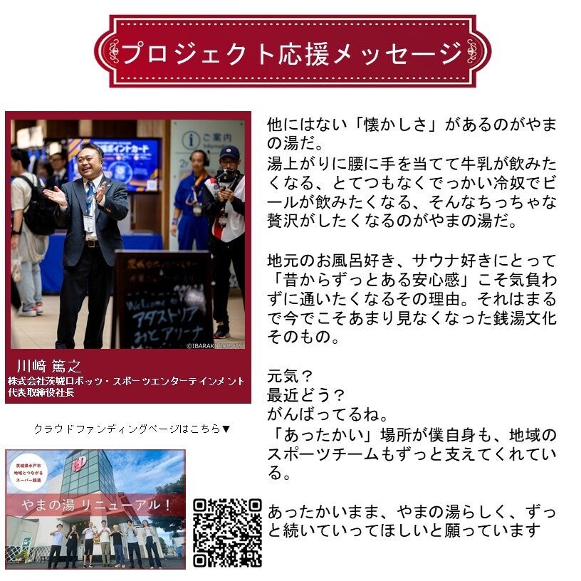 茨城ロボッツの選手、スタッフさん、そして川崎社長も含めいつもお風呂のご利用ありがとうございます。