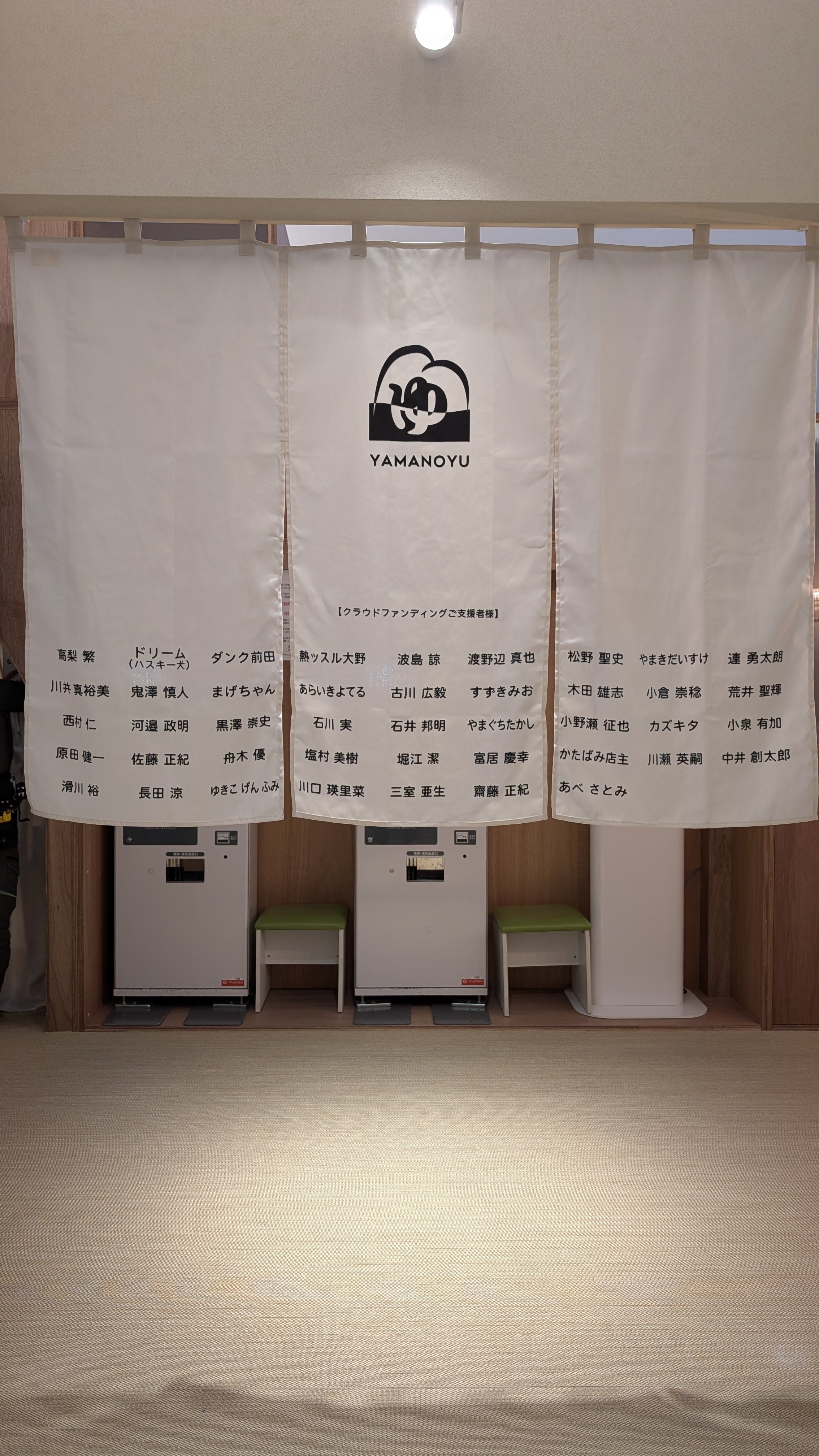 また、暖簾掲載のように「やまの湯に名前が残る」リターンもご用意しています。