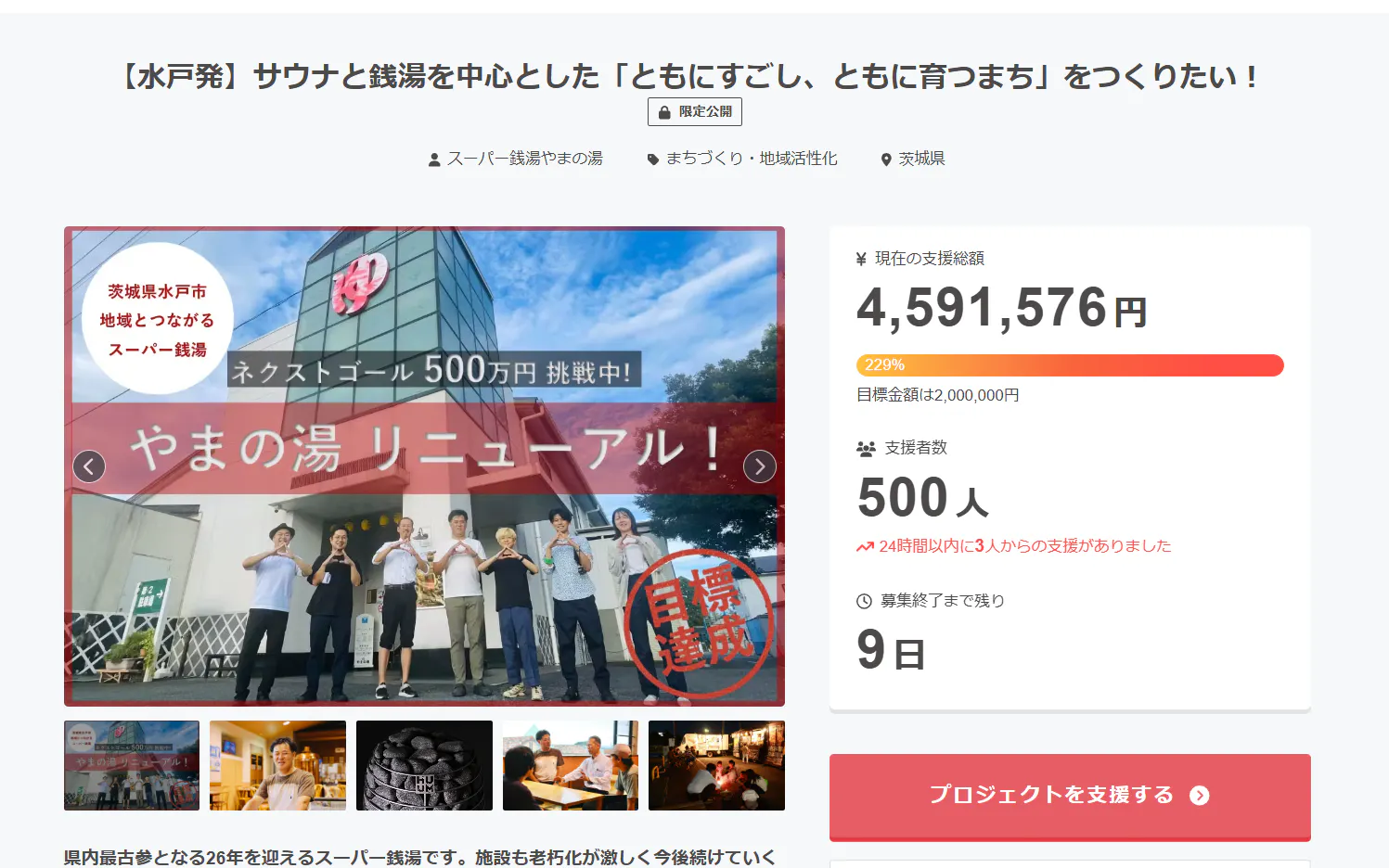 クラウドファンディング残り9日間でネクストゴール500万までもう少し。