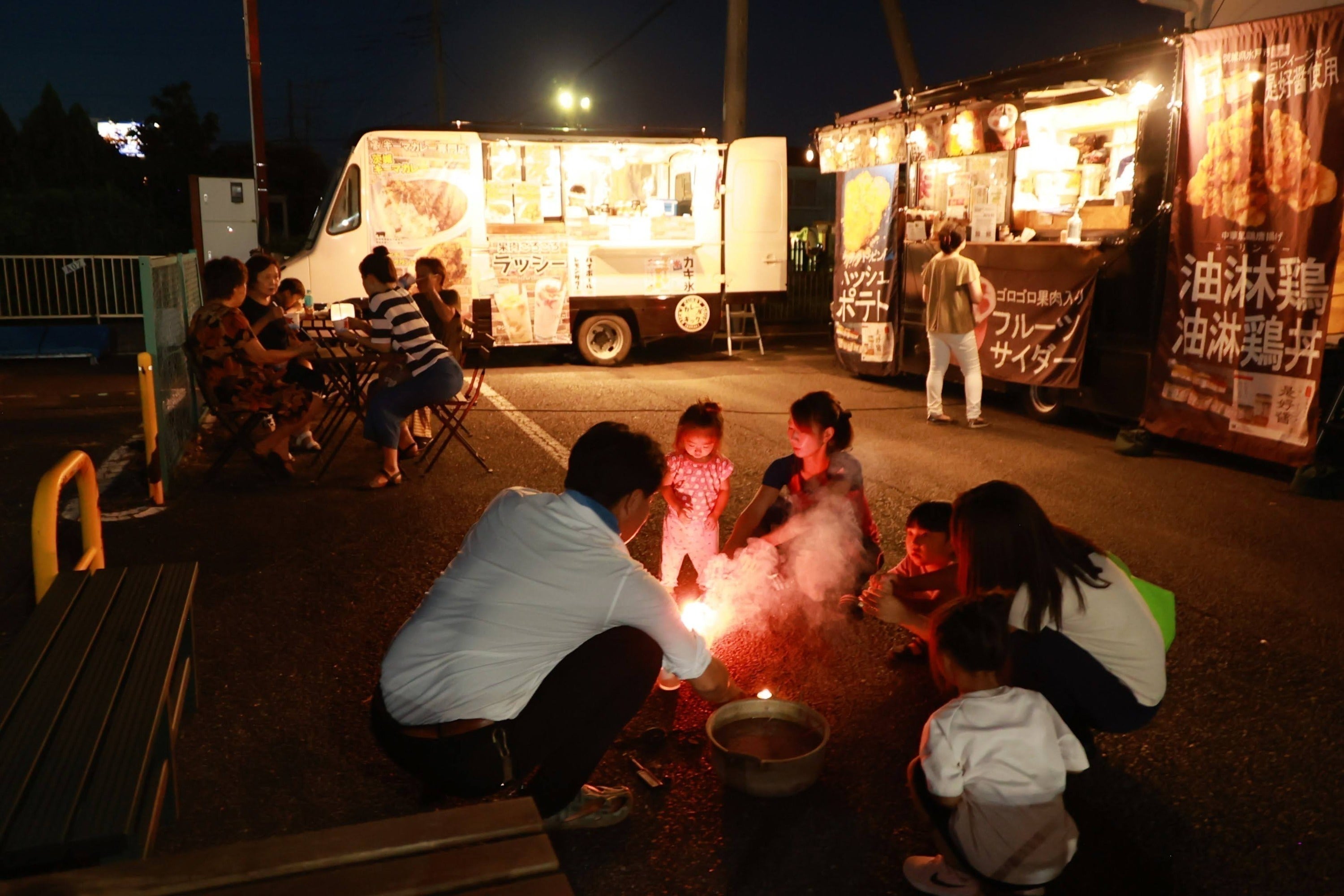 駐車場のスペースを活用した、子どもたち向けの花火縁日