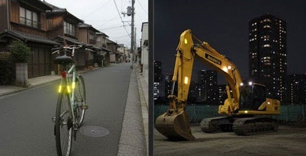 反射材は「動く部分」に貼ると、よりドライバーの目を引きます!