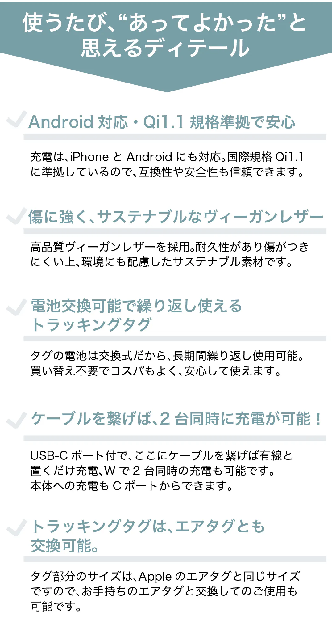 その体験から生まれたのが、このSmartTracking 7-in-1 Wireless Charging Caseです。