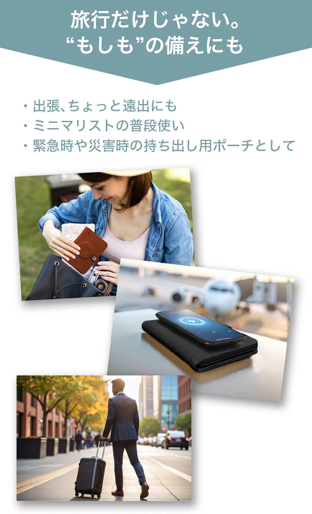 旅行・出張・日常・災害時、あらゆるシーンにフィットします。