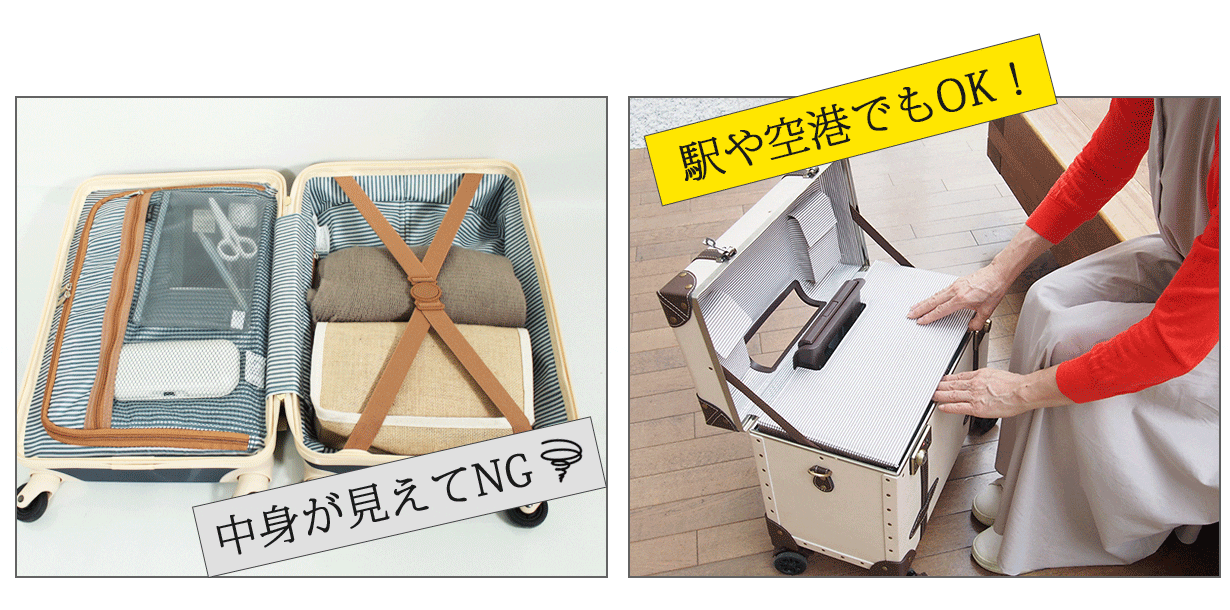 外出時の荷物の出し入れも中身が見えにくくて便利♪