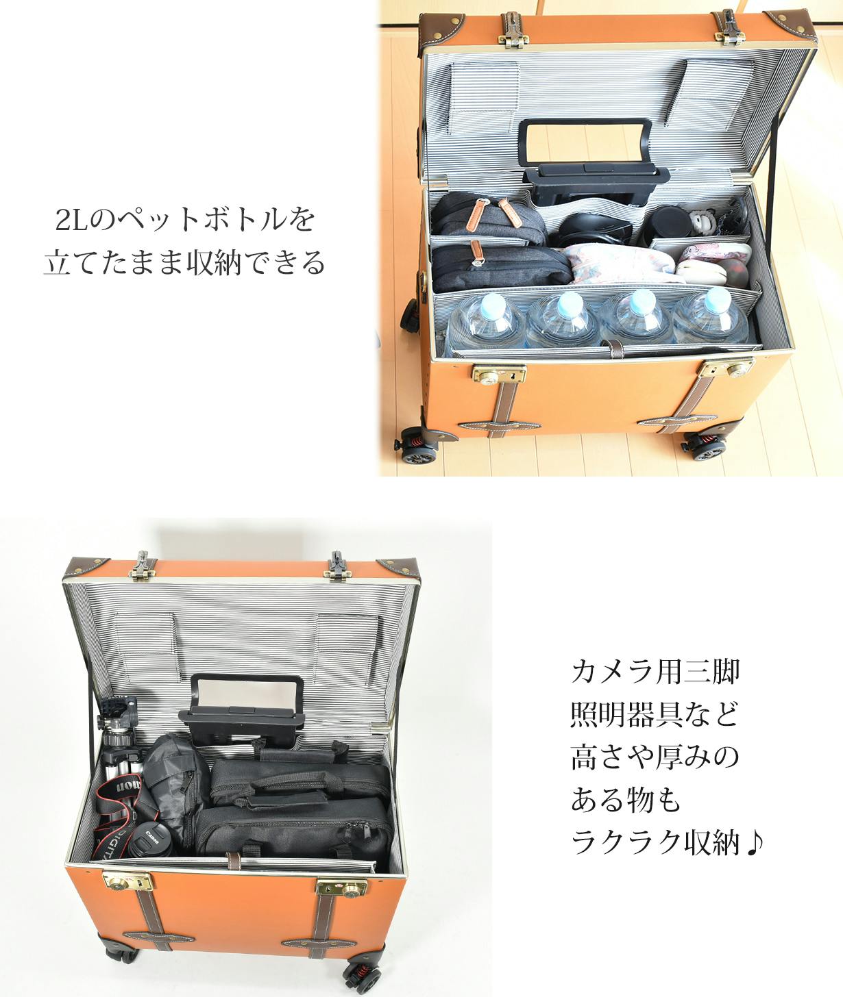 縦型のスーツケースでは収納しにくい、高さや厚みのある物も収納可能。